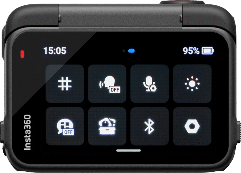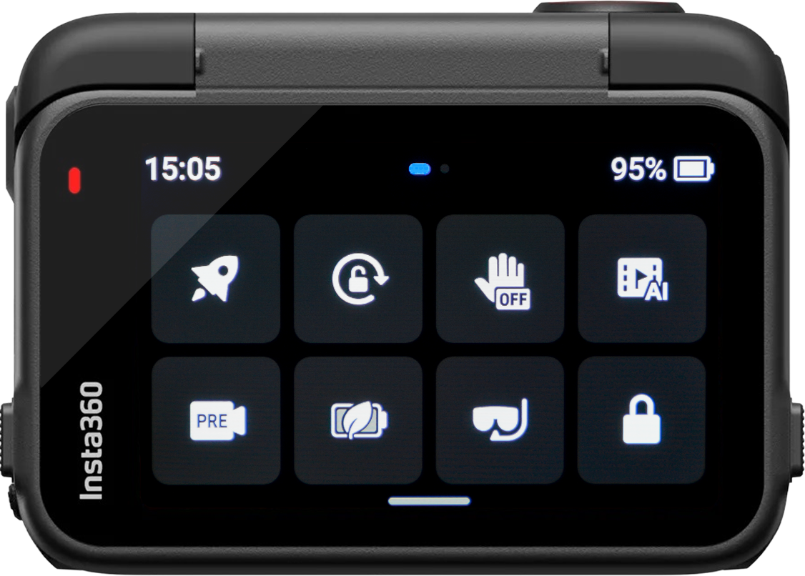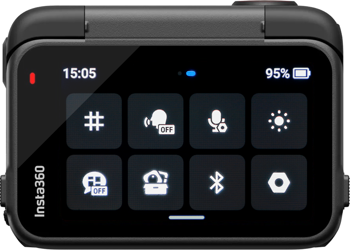 ON – La plus importante étant celle de devant. Cette LED permet de savoir si la Ace Pro 2 filme ou non en regardant dans le rétroviseur si vous l’avez sur le casque ou simplement en jetant un coup d’œil à la caméra si elle est sur le guidon. Si la LED clignote rouge, alors l’enregistrement est en cours.