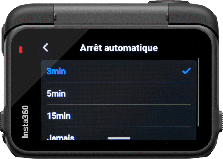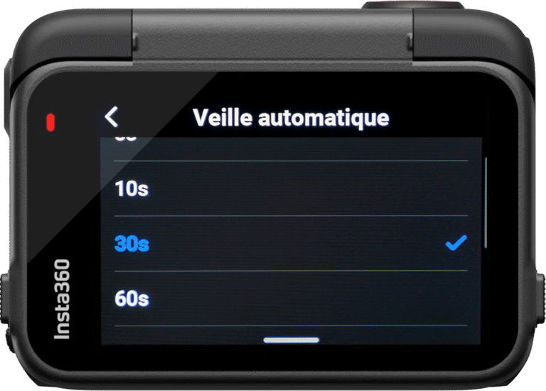 1 minute est très court, trop court même, vous aurez à peine le temps d’installer votre caméra sur votre casque et de l’enfiler qu’elle se sera déjà éteinte. Les paramètres supérieurs sont à mon sens inutiles, la Ace Pro 2 n’a pas besoin de rester en standby autant de temps si on ne s’en sert pas.