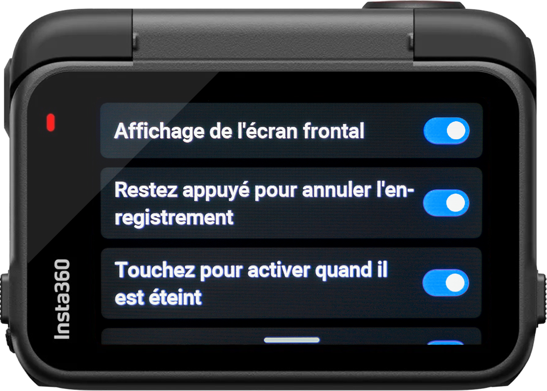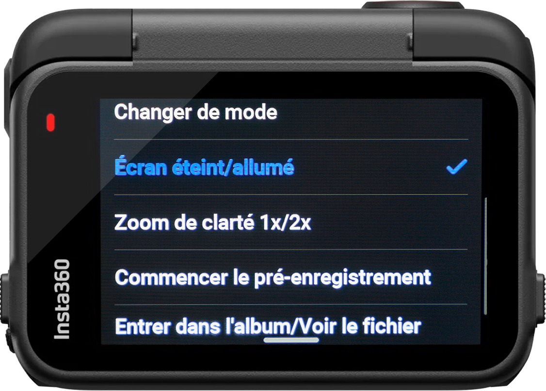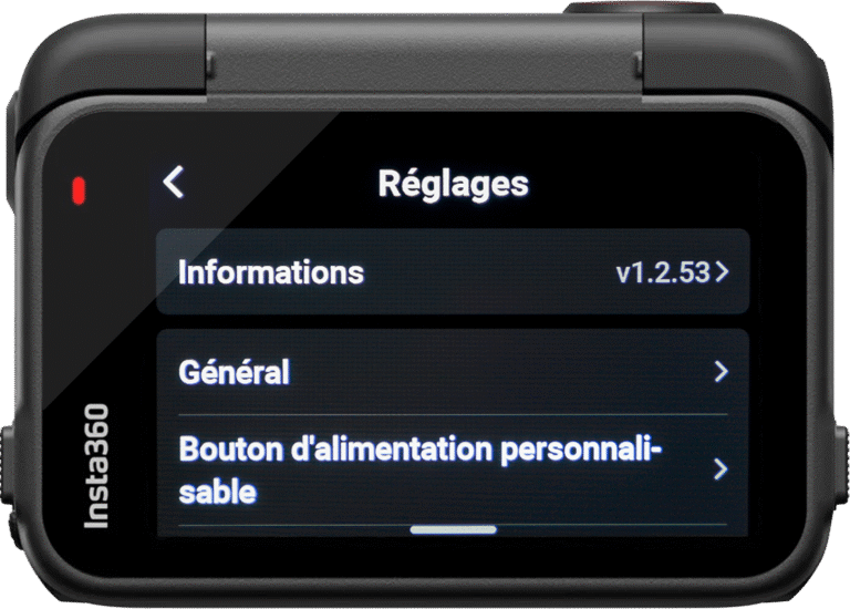 Régler le bouton d’alimentation lorsque vous n’enregistrez pas sur « Écran éteint/allumé », étant donné que comme dit précédemment les gants ne sont pas forcément tactiles, si la caméra s’est mise en veille vous pouvez rallumer l’écran avec le bouton power.