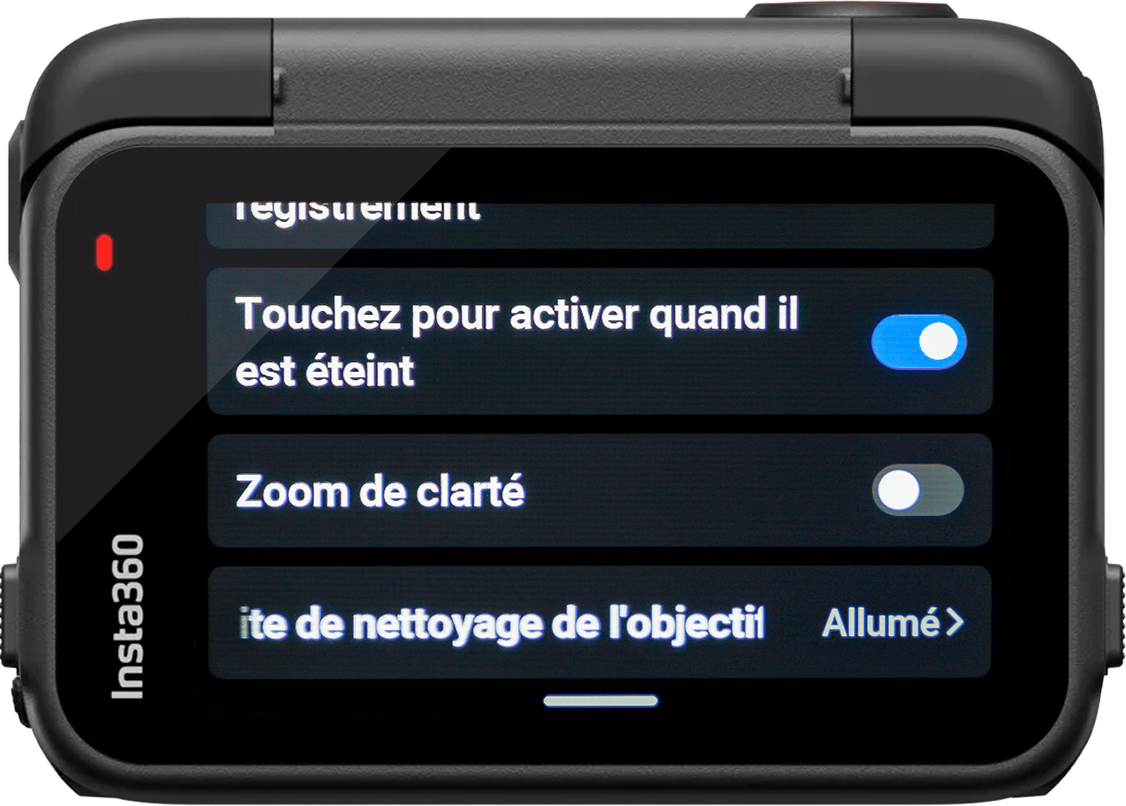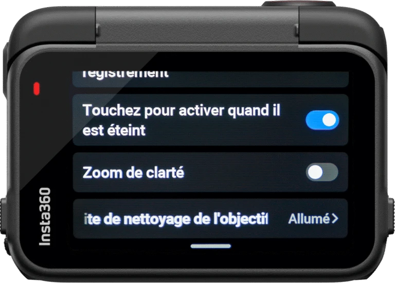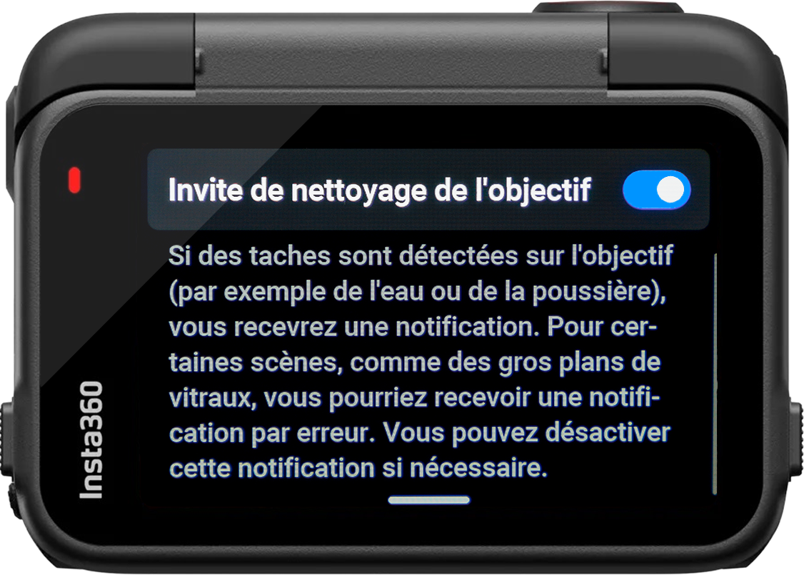 On – Alors petite précision, à l’heure où j’écris ces lignes vous serez prévenu du fait qu’il y ai une tache telle une mouche écrasée sur l’objectif uniquement avant de lancer l’enregistrement. C’est donc un plus pour vous avertir entre 2 plans si vous ne vérifiez pas par vous même, mais j’ai espoir qu’à terme via une mise à jour on soit prévenu durant l’enregistrement avec des vibrations afin de s’arrêter et passer un coup de propre sur l’objectif !