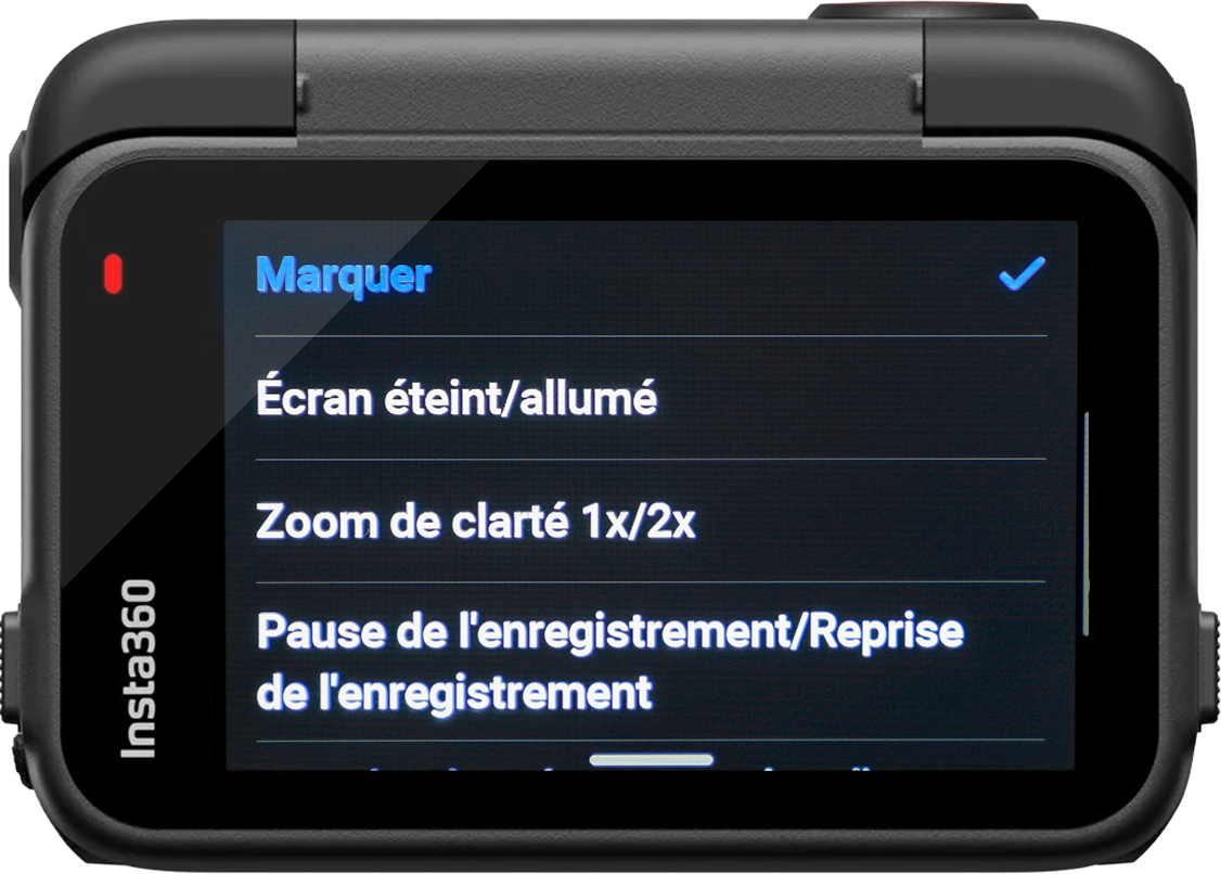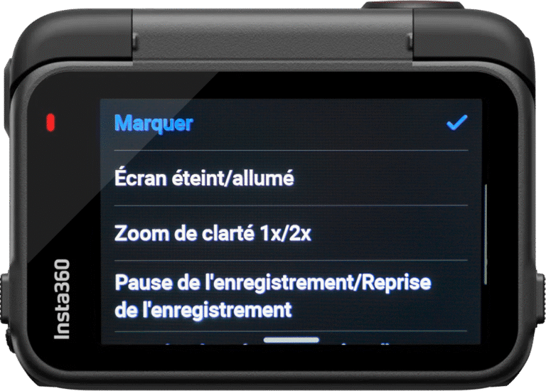 Et lorsque vous enregistrez vous pouvez choisir « Marquer ». C’est très pratique si vous voulez faire des petits montages rapides depuis l’application lors d’une balade et que vous filmez longtemps. À chaque pression sur le bouton power une marque est ajoutée sur le fichier vidéo afin de pouvoir retrouver facilement les moments importants depuis l’application.