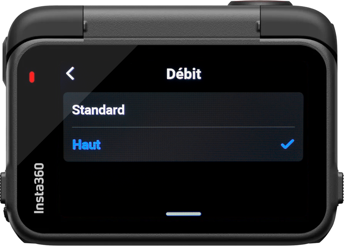 Haut – Sur ce réglage les vidéos sont enregistrées à un débit de 100 Mbps, contre 50 Mpbs, soit 2 fois moins en réglage « Standard ».