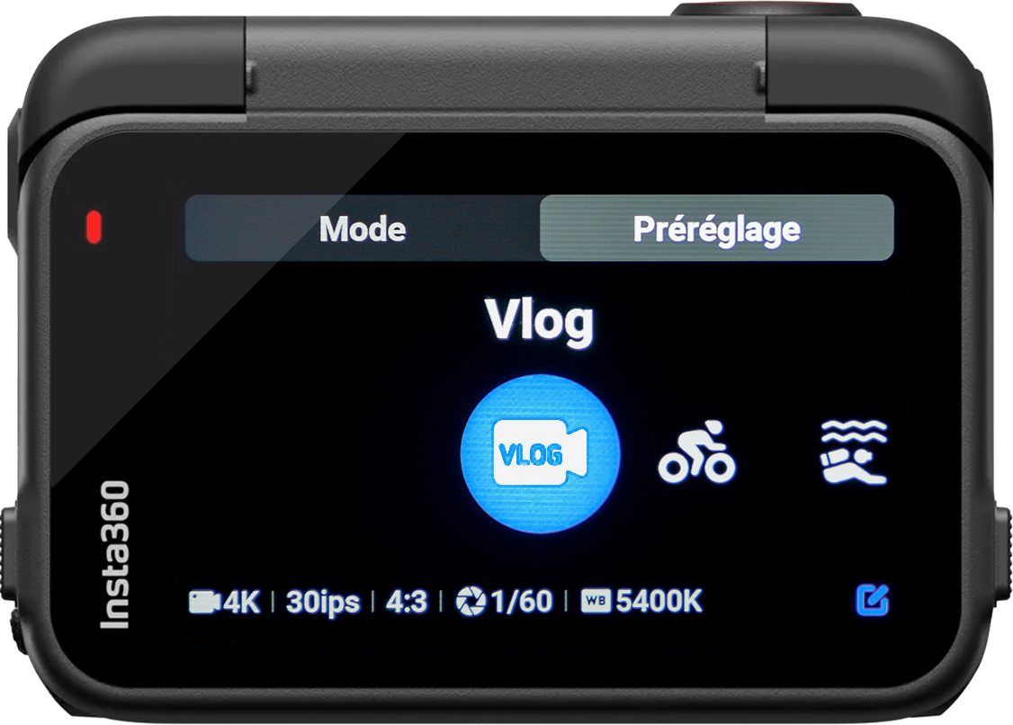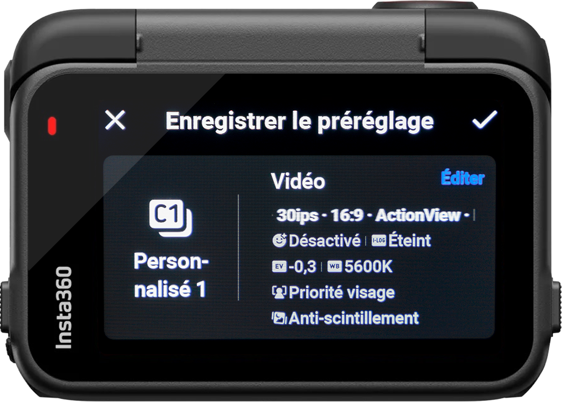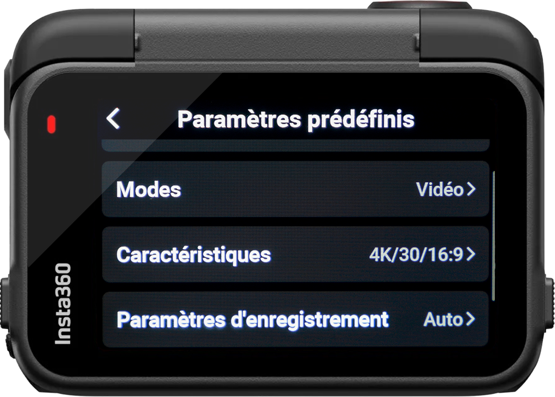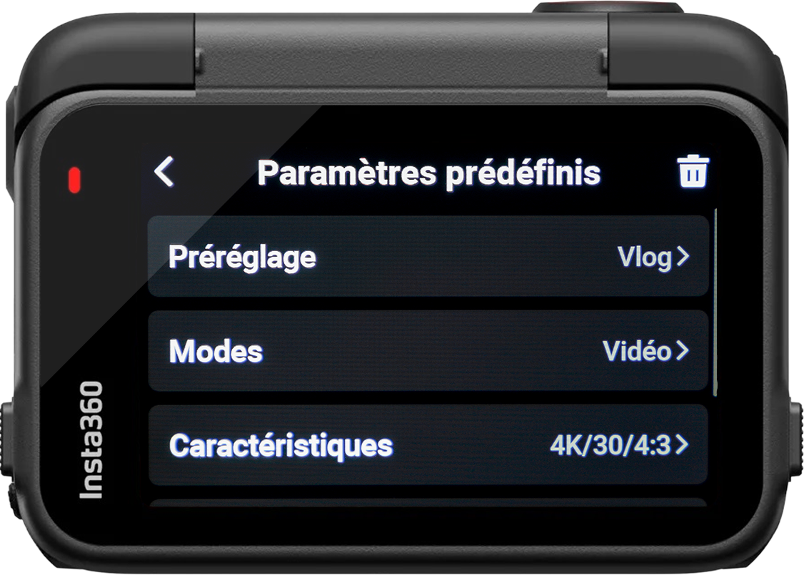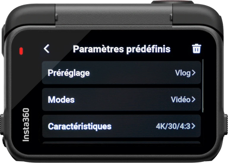 Arrivés sur cette page, vous trouverez des paramètres prédéfinis créés par Insta360.
