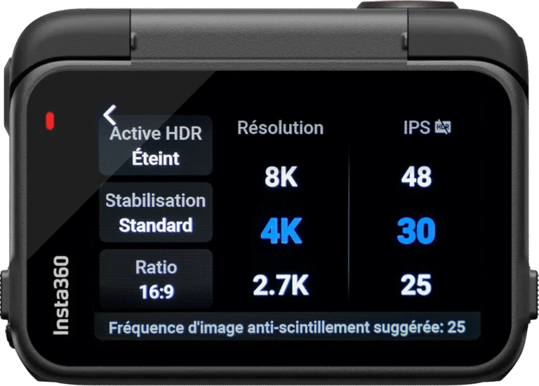 4K – Bien qu’expliqué plus haut, les vidéos seront exportées en 4K, la qualité serait en théorie bien meilleure si la source est en 8K. Cependant, le mode 8K limite fortement le champ de vision de la Ace Pro 2, ce qui gâche donc la vidéo. Je vous déconseille de filmer en 8K avec cette caméra, le zoom est trop important.