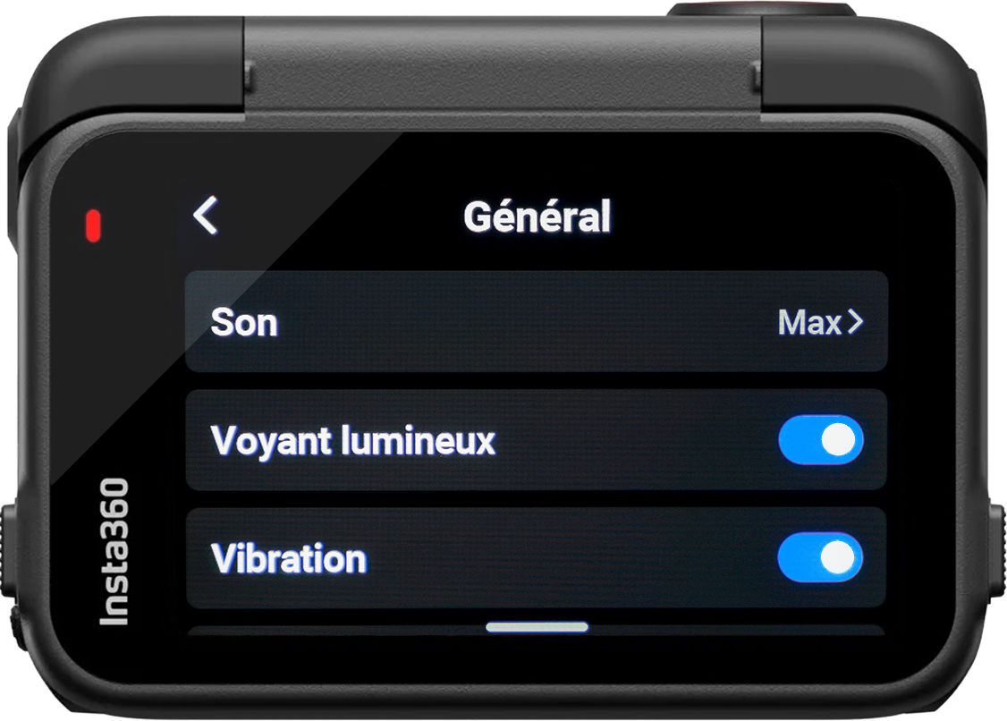 ON – C’est une fonction complémentaire au signal sonore qui est vraiment très pratique lorsque la caméra est sur le casque. Lorsque vous démarrez ou arrêtez un enregistrement, la caméra vibre et fait vibrer votre casque, de façon à ce que si vous n’avez pas entendu le signal sonore, vous savez que l’action a bien été effectuée.
