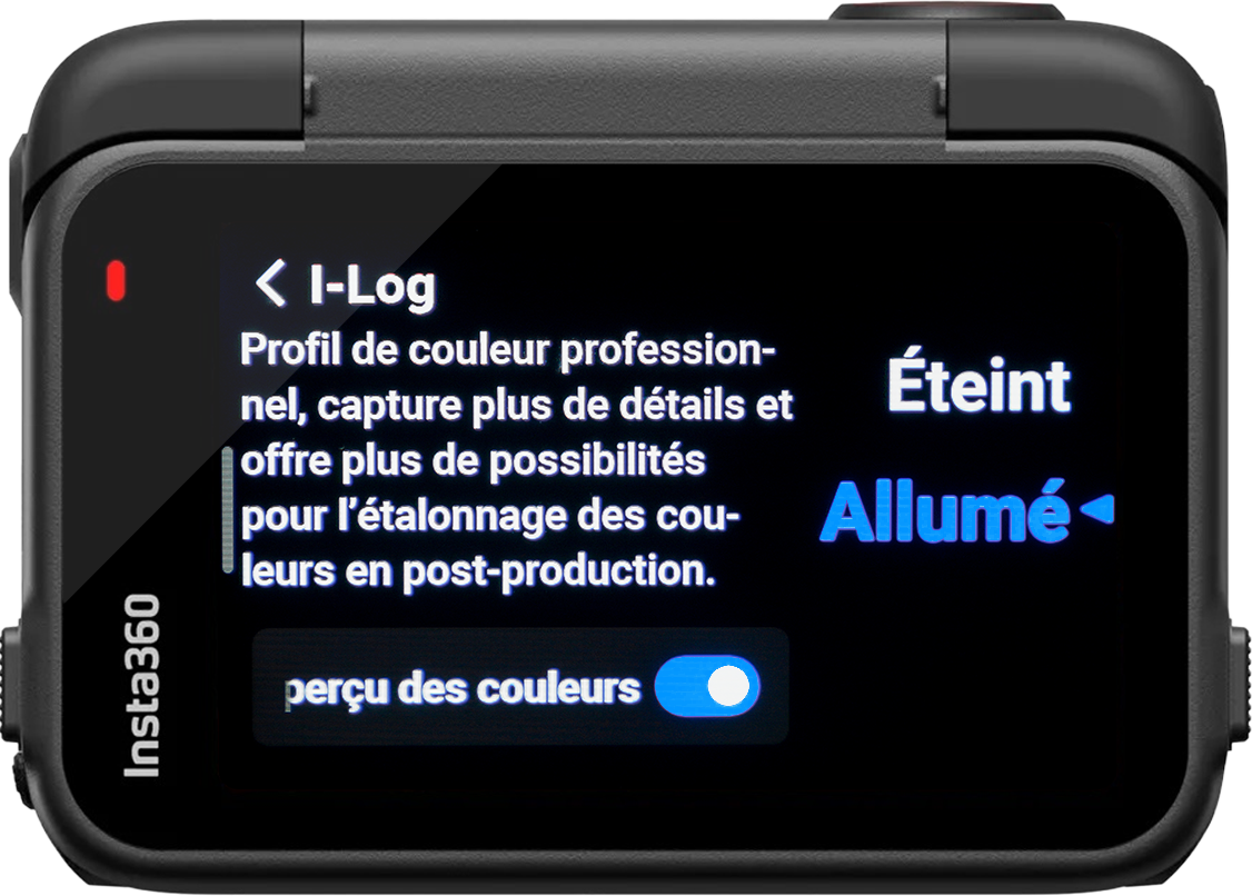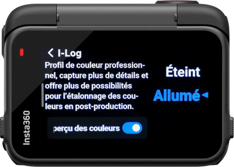 Allumé  Vous permettra d’obtenir la plus grande marge de manœuvre pour l’édition des couleurs. Vous pouvez sélectionnez ce réglage même si vous ne savez pas comment modifier les couleurs, car de un, je vous expliquerai par la suite comment faire, et de deux, même si vous changez d’avis, vous pourrez obtenir le rendu du profil Standard en un clic lors du montage. Passer du I-LOG à Standard est possible au montage, l’inverse non.