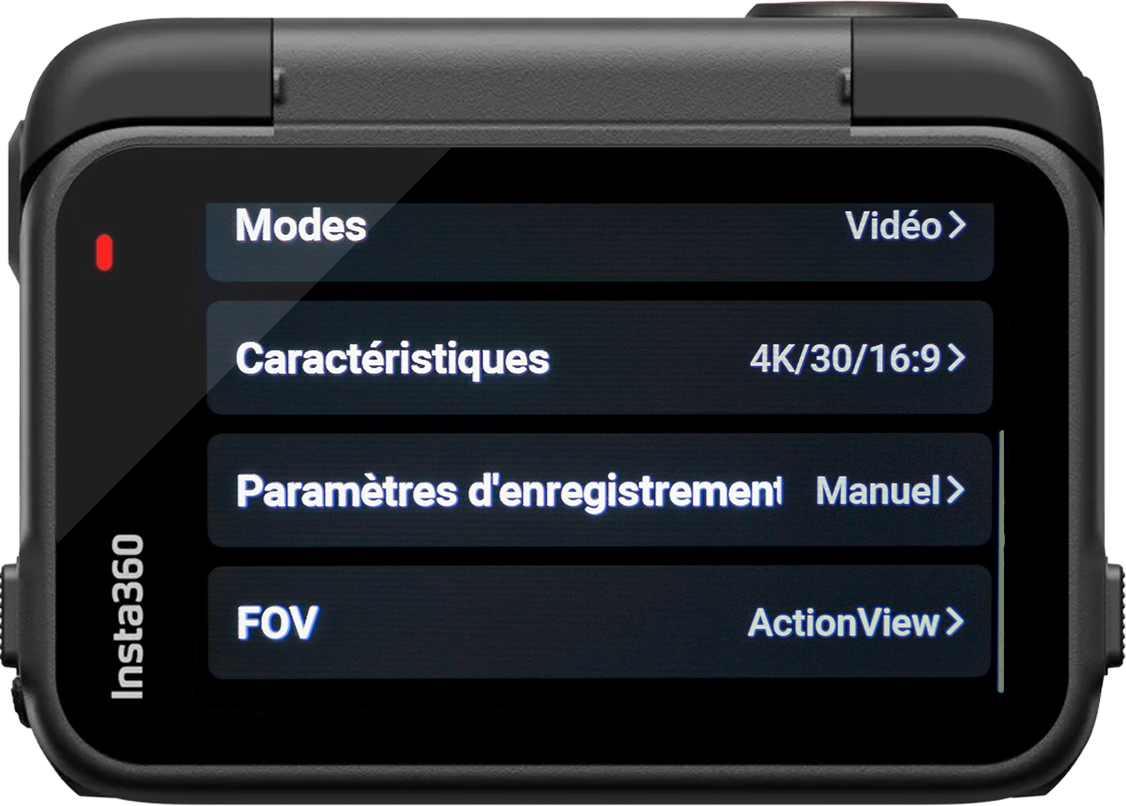 Le format 16:9 est utilisé pour les deux formats (portrait ou paysage) mais il faut choisir entre l’un ou l’autre afin de maximiser l’angle de vision selon la destination de la vidéo. Pour du paysage vous mettrez la Ace Pro 2 droite sur votre casque ou guidon, pour du portrait vous la tournerez à 90°.